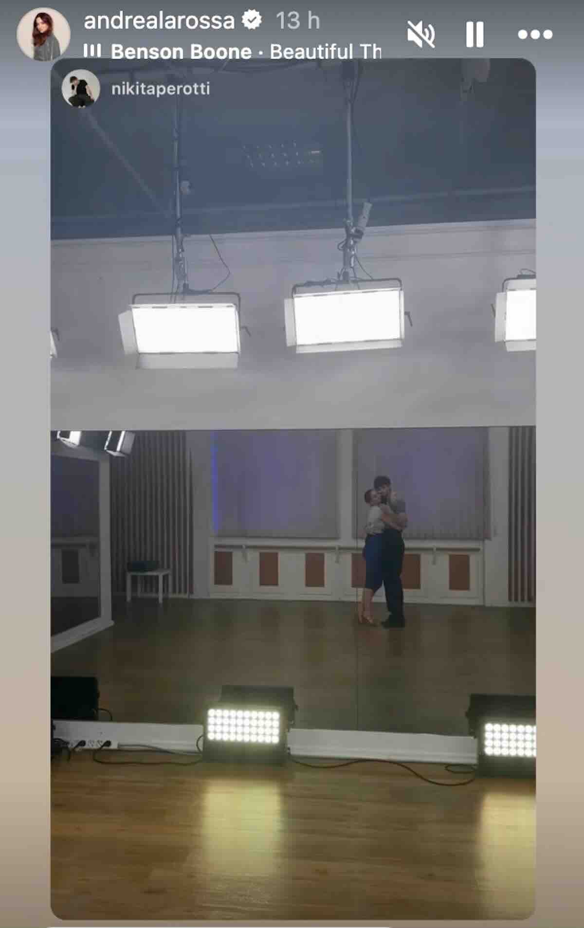 Le prove sono riprese. Andrea è tornata in sala con il suo maestro, Nikita Perrotti, e un video pubblicato nelle sue Storie Instagram mostra i due danzare sulle note di “Beautiful Things”. Alla fine della coreografia, si stringono in un abbraccio intenso, che racchiude complicità, affetto e quella forza ritrovata che aveva conquistato il pubblico nelle settimane precedenti. Un gesto semplice ma potentissimo, che molti fan hanno letto come un segno di rinascita. Come se la danza, ancora una volta, potesse diventare il suo rifugio, la sua via per tornare a respirare.