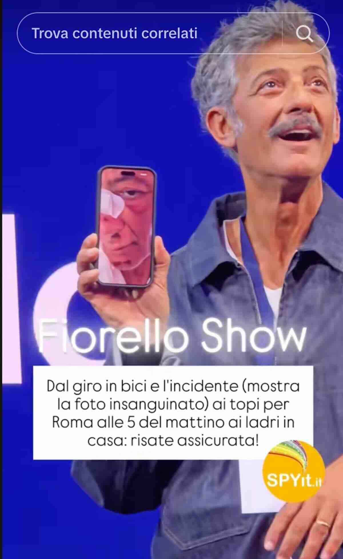 @spyit.it Dal giro in bici e l'incidente (mostra la foto insanguinato) ai topi per Roma alle 5 del mattino ai ladri in casa: risate assicurata! Segui 👉 www.spyit.it @Fiorello And Friends @Rosario Fiorello #Fiorello #ilfestivaldellospettacolo #fiorelloshow #risate #unico ♬ suono originale – www.spyit.it